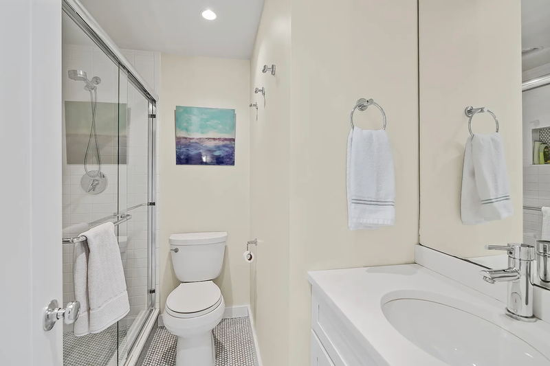 2 Full (2 Showers, No Tub), 1 Half bath on first floor